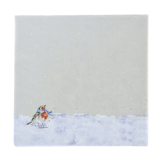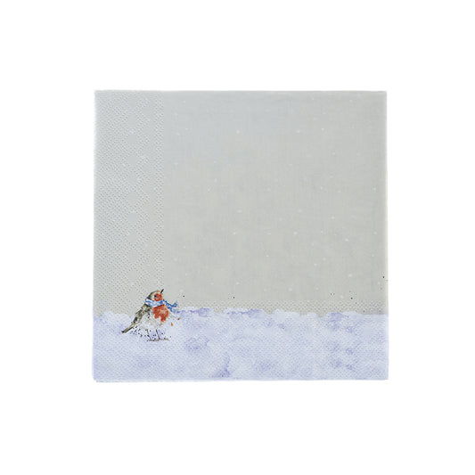 Wrendale Designs Christmas Napkins Cocktail ROBINS two