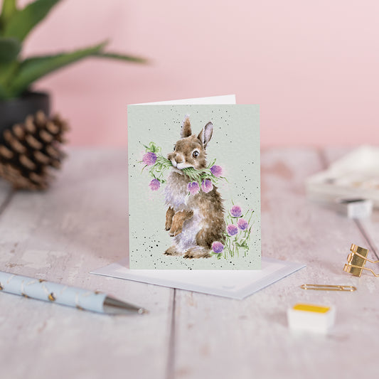 Wrendale Designs Mini card RABBIT Head Clover Heels