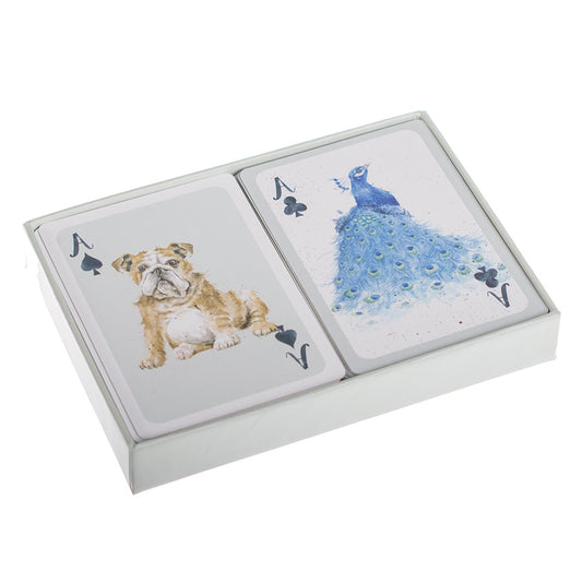 Wrendale Designs Playing Card Gift Set contains two decks. The cards are small-ish ~6 x 8.5cm but the numbers and suit font is medium size.