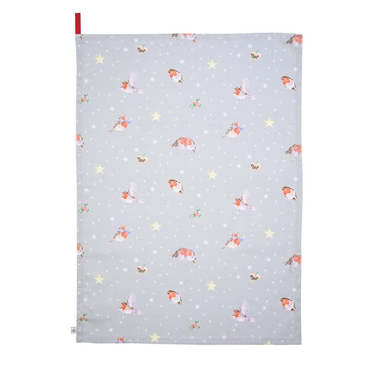 Wrendale Designs Christmas Tea Towel ROBINS blue