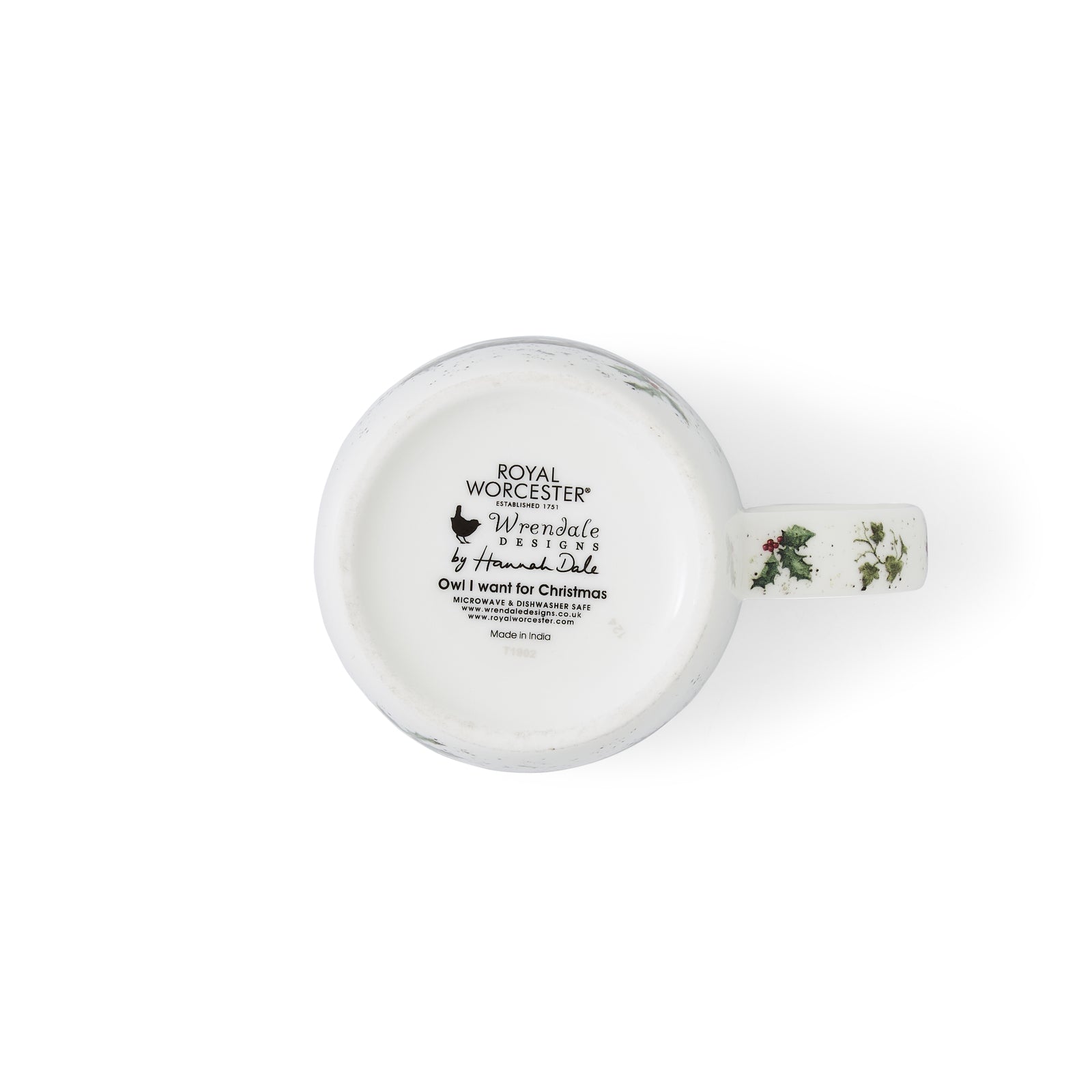 Wrendale Designs gift-boxed, Royal Worcester fine china Christmas mug featuring Hannah Dale’s illustration of a Santa-hat wearing Owl & titled Owl I Want for Christmas.
