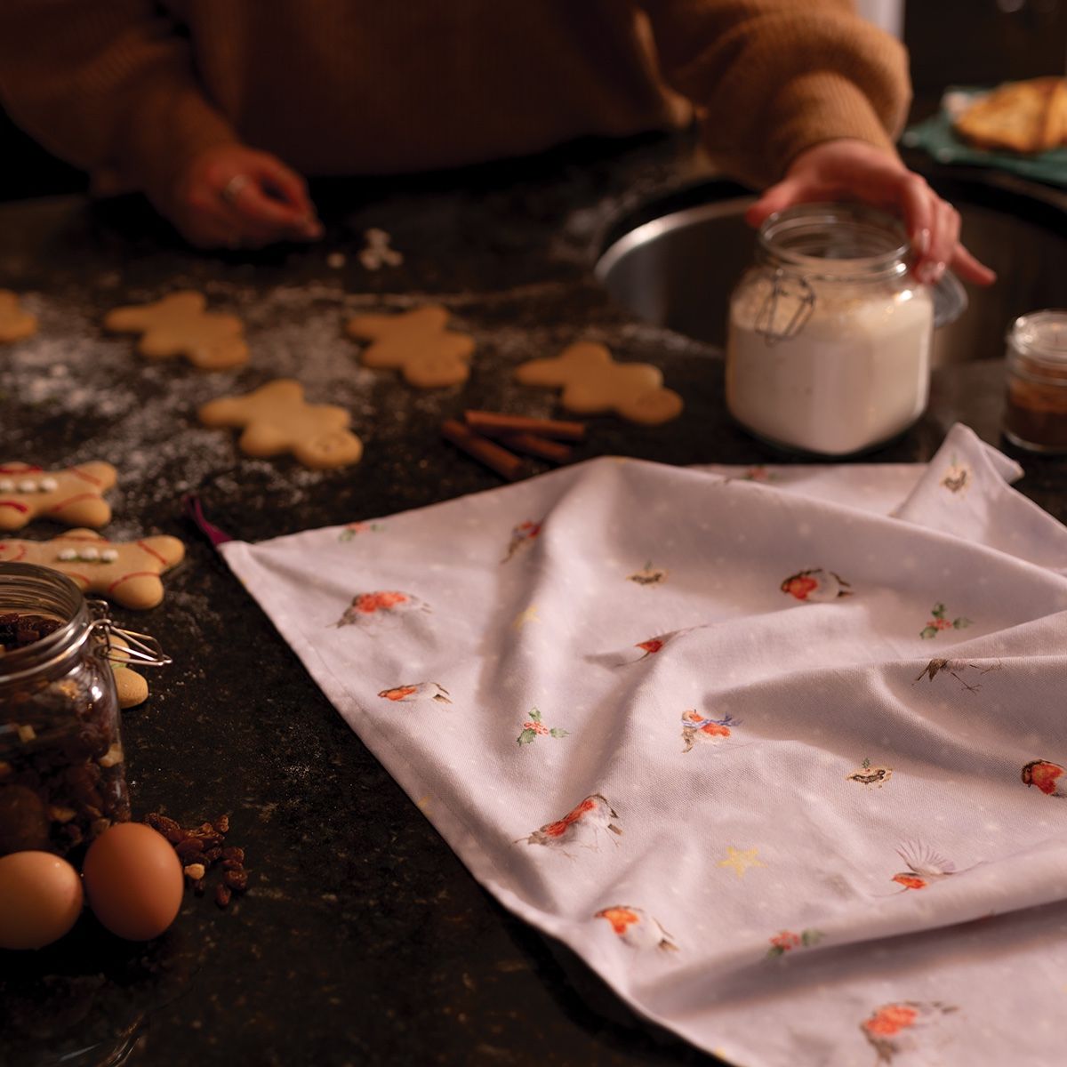 Wrendale Designs Christmas Tea Towel ROBINS blue